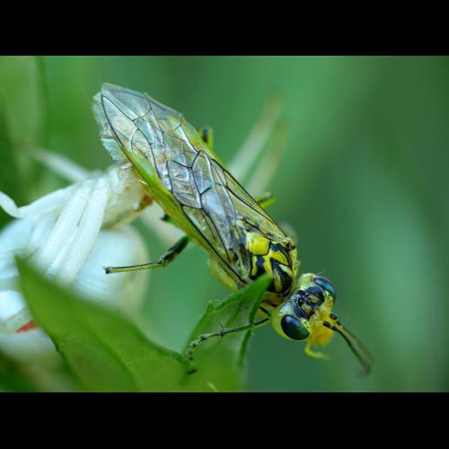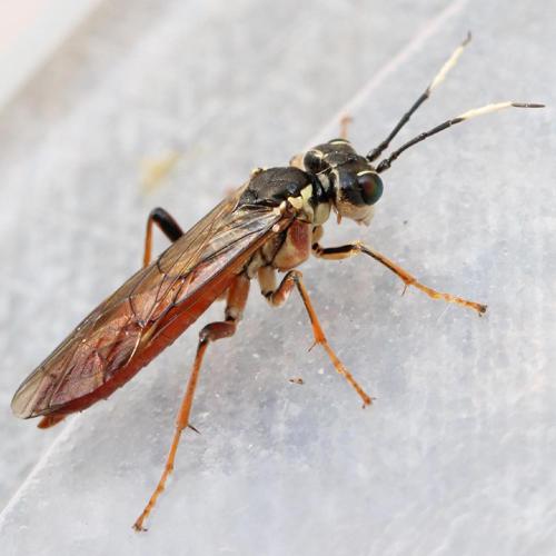 Mouche-à-scie noire à ailes jaunes